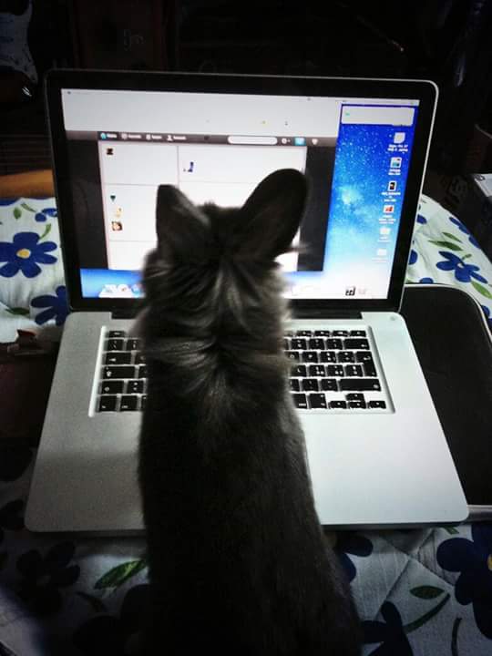Non è assolutamente facile starsene sul divano a scrivere quando hai un coniglio, specialmente quando sembra particolarmente contento che tu sia a casa e non in giro, specialmente quando si sente in vena di agguati.