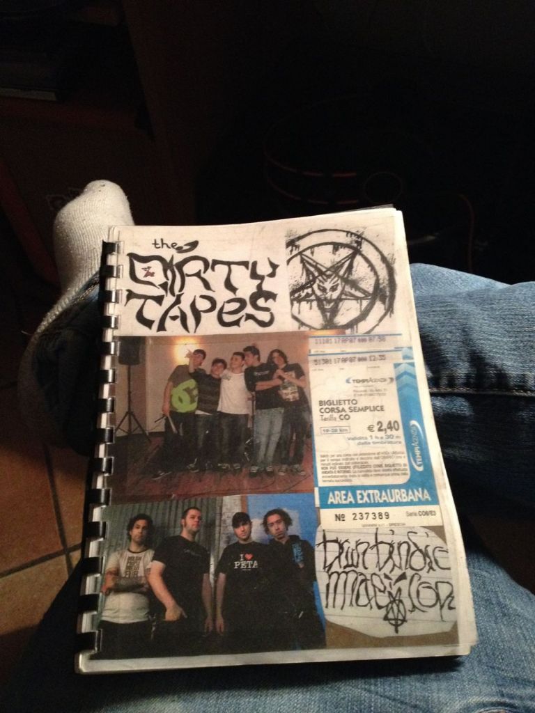 …a prima vista potrebbero essere i calzini puma bianchi che ho deciso di sfoggiare oggi pomeriggio, poi concentrandoti sulla “copertina” pensi che se la giochino i due pentacoli (ascoltavo parecchio death-metal all’epoca) con i due biglietti del pullman…